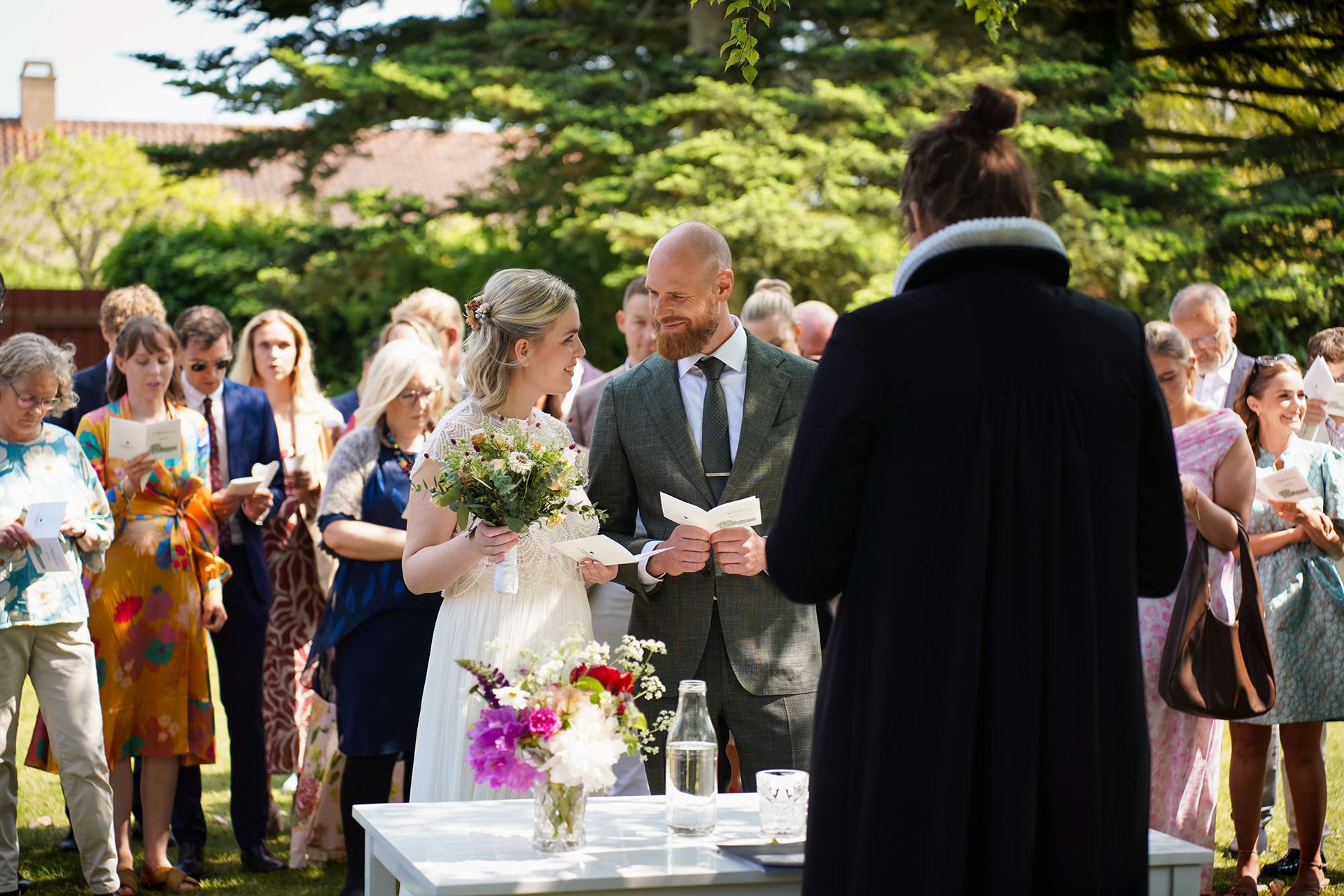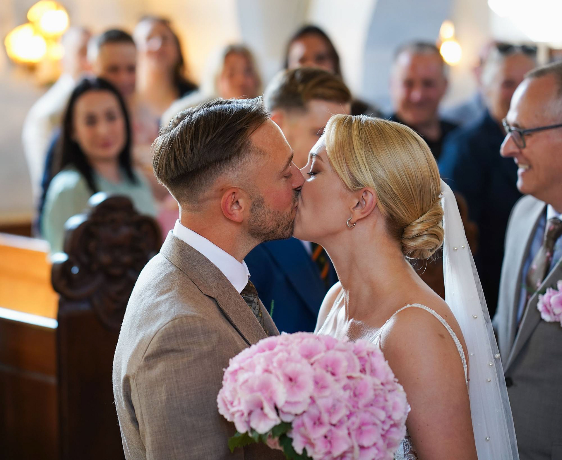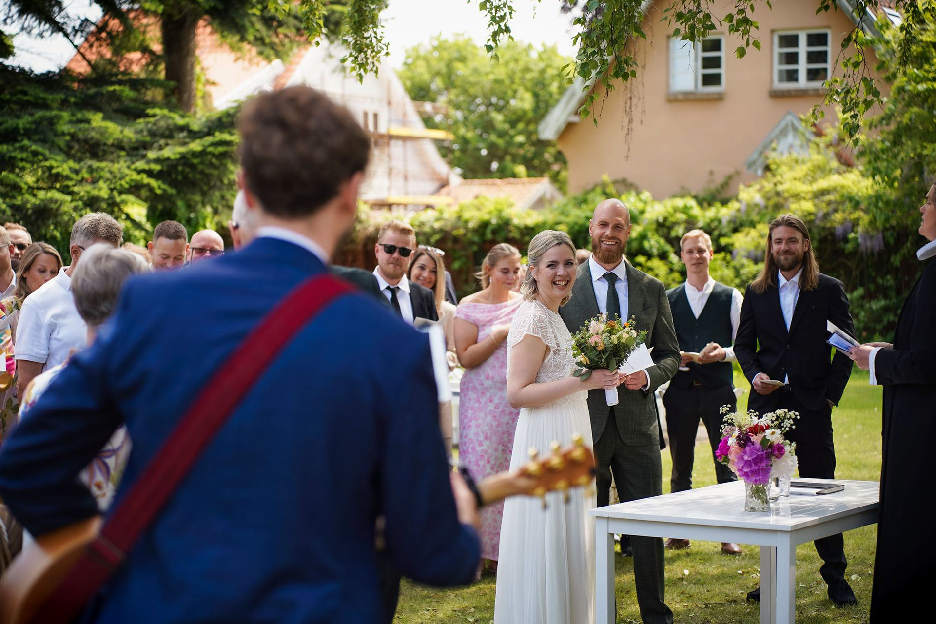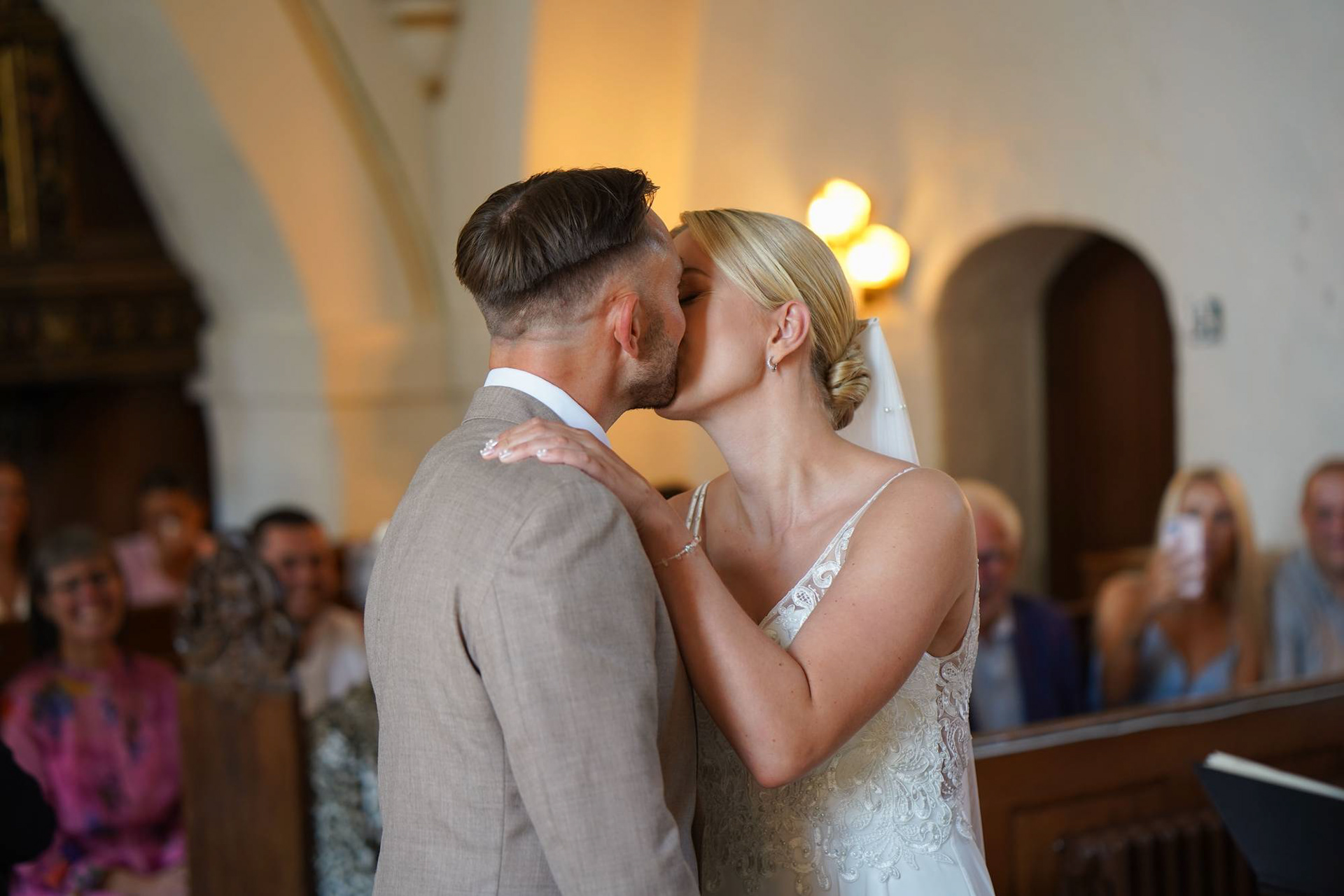 Når vielsen begynder, arbejder vi diskret og tager stemningsfulde billeder, alt efter hvilke fotoregler der gælder i kirken eller på stedet. Fordi vi er to fotografer, har vi mulighed for at dække begivenheden fra flere vinkler. Vi fotograferer bruden, når hun træder ind i rummet, og vi fanger gommens reaktion. Vi dokumenterer også selve øjeblikket, hvor ringene bliver udvekslet, kysset, der bekræfter jeres løfte, og stemningen blandt jeres gæster. Vi fanger både de store begivenheder og de små følelsesmæssige øjeblikke, der gør jeres vielse til noget helt særligt.