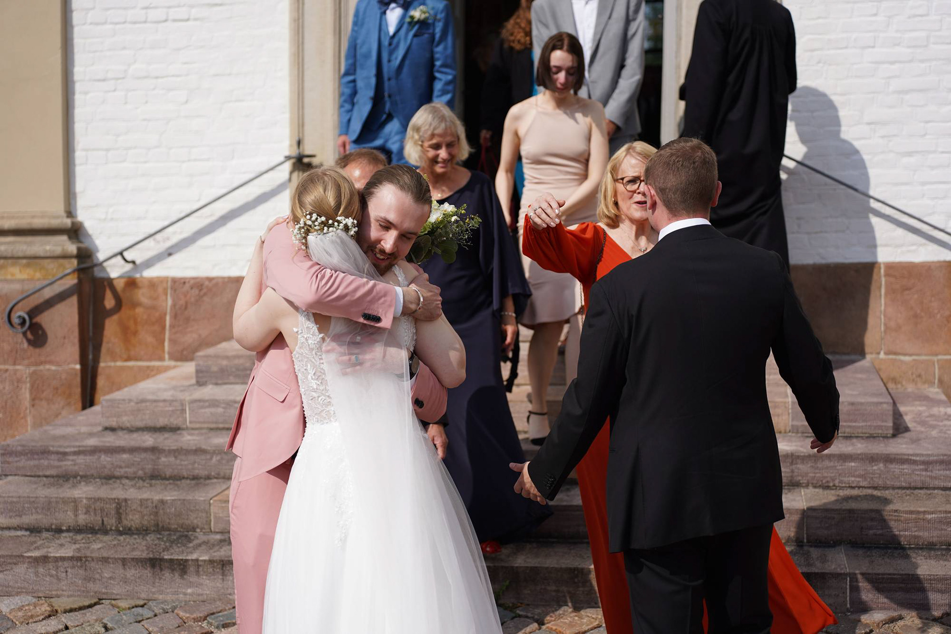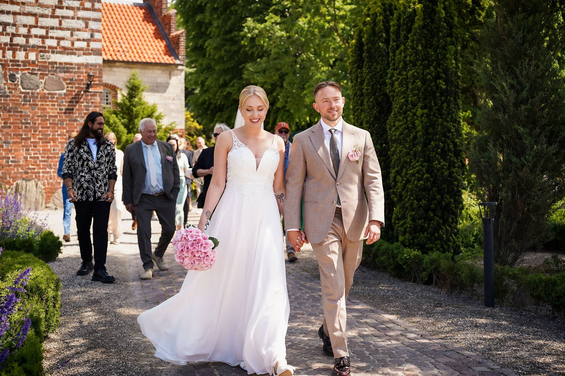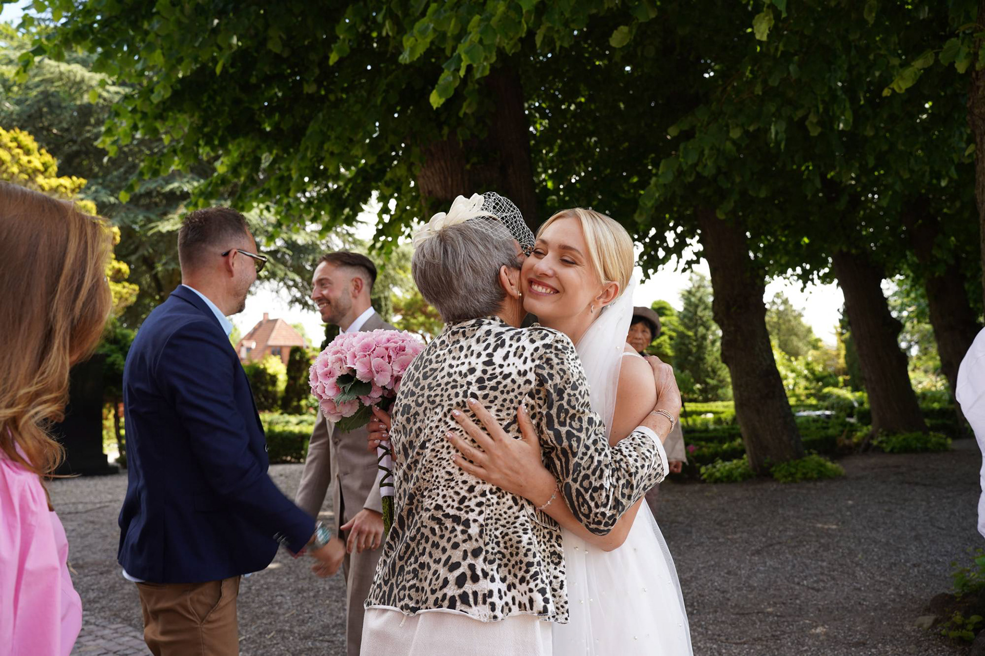 Efter vielsen bevæger vi os ud foran kirken, hvor vi fanger det næste stemningsfulde kapitel. Her oplever vi gæsternes lykønskninger til jer som nygifte, og vi dokumenterer de spontane kram, glade smil og måske en tåre eller to. Nogle kaster ris, andre puster sæbebobler eller jubler med hænderne i vejret. Det er en festlig overgang til resten af dagen. Vi sørger også for at tage gruppebilleder med familie og nære venner. Det er et af dagens højdepunkter, som ofte føles som et øjeblik, der forsvinder alt for hurtigt for brudeparret selv, men som på billeder kan genopleves igen og igen.