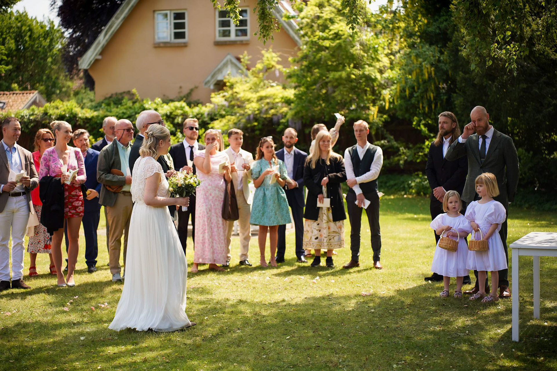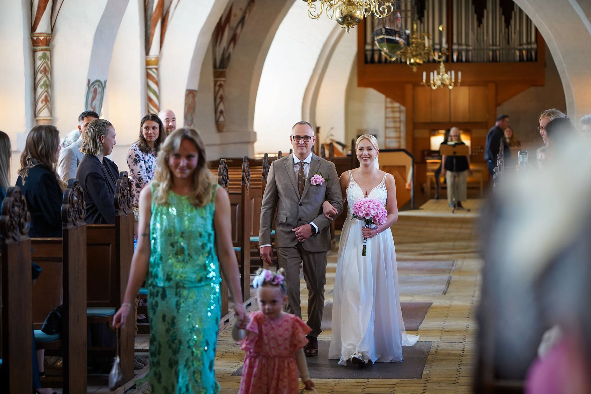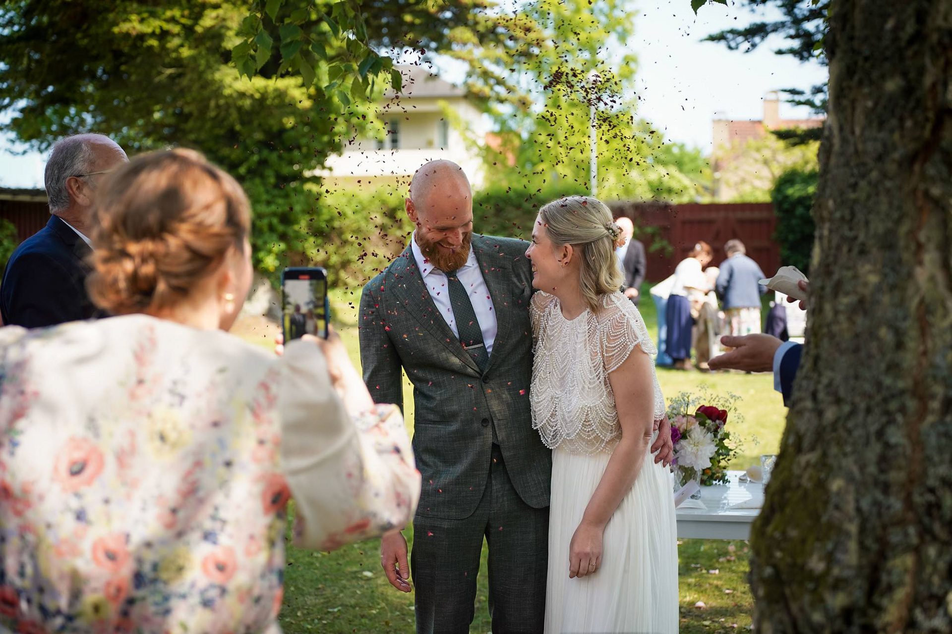 Efter vielsen bevæger vi os ud foran kirken, hvor vi fanger det næste stemningsfulde kapitel. Her oplever vi gæsternes lykønskninger til jer som nygifte, og vi dokumenterer de spontane kram, glade smil og måske en tåre eller to. Nogle kaster ris, andre puster sæbebobler eller jubler med hænderne i vejret. Det er en festlig overgang til resten af dagen. Vi sørger også for at tage gruppebilleder med familie og nære venner. Det er et af dagens højdepunkter, som ofte føles som et øjeblik, der forsvinder alt for hurtigt for brudeparret selv, men som på billeder kan genopleves igen og igen.