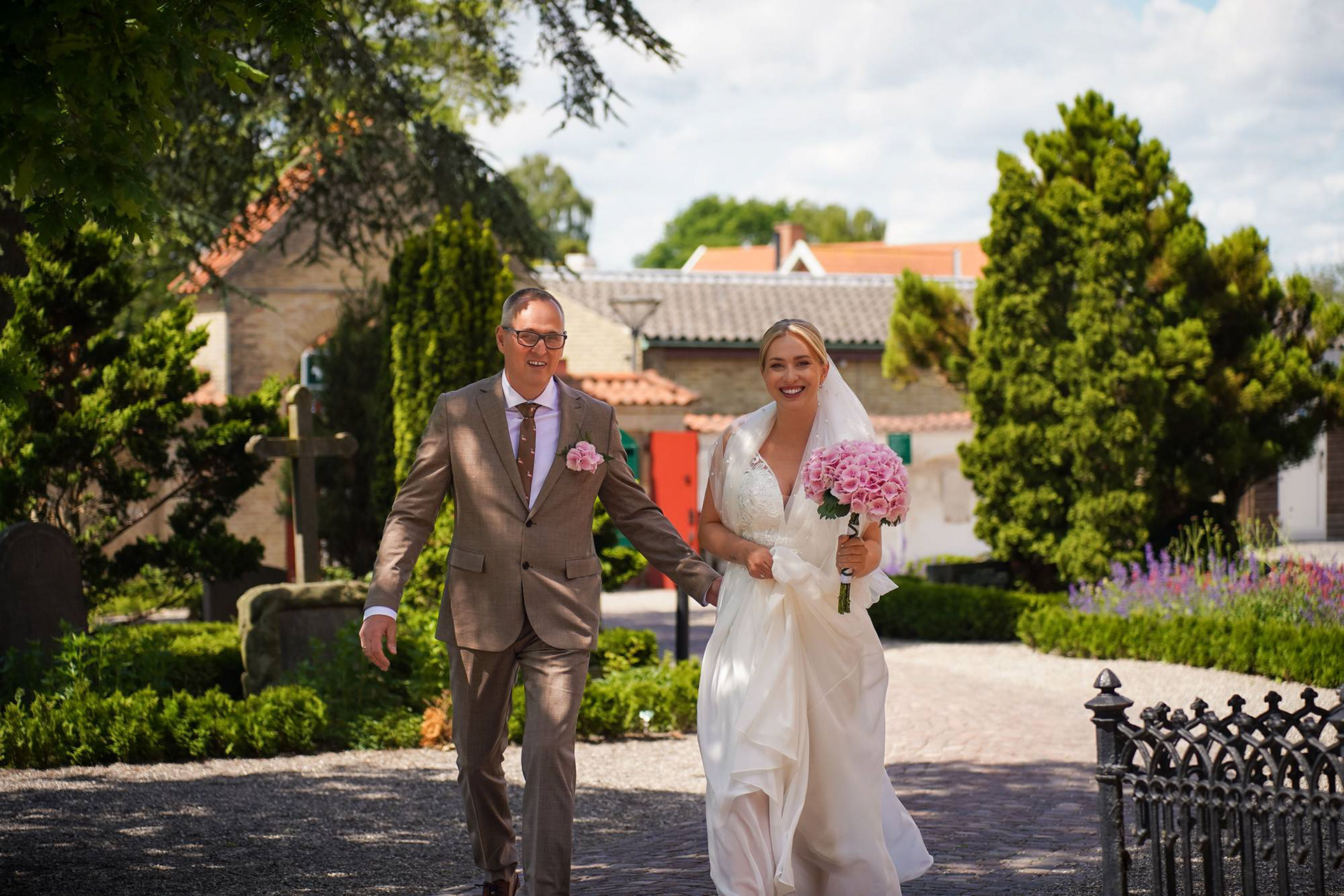 Vi ankommer altid 30 min før vielsen begynder. Her fokuserer vi på at fange stemningen blandt de ventende gæster, og vi fanger gommens ankomst. Vi fotograferer gæsterne, og gommen der hilser på hinanden, smilene der udveksles og den særlige spænding, der ligger i luften, lige før cermonien går i gang.